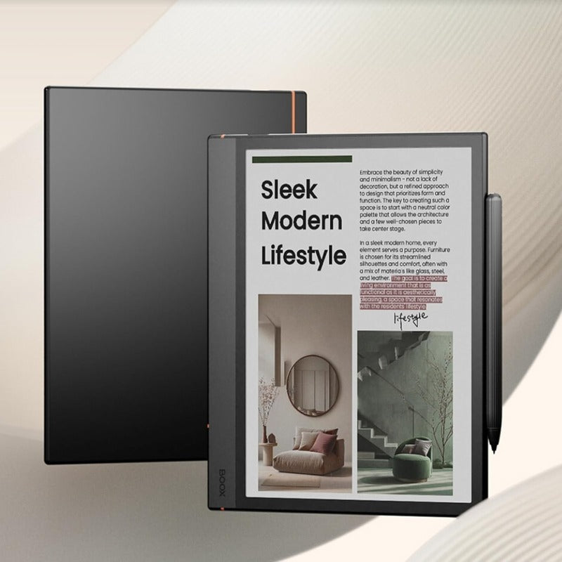 The BOOX stylus with 4,096 pressure sensitivity levels ensures precise note-taking. With Wi-Fi, Bluetooth 5.1, dual speakers, and a 3,700mAh battery, this 420g tablet offers adjustable front light for comfort.